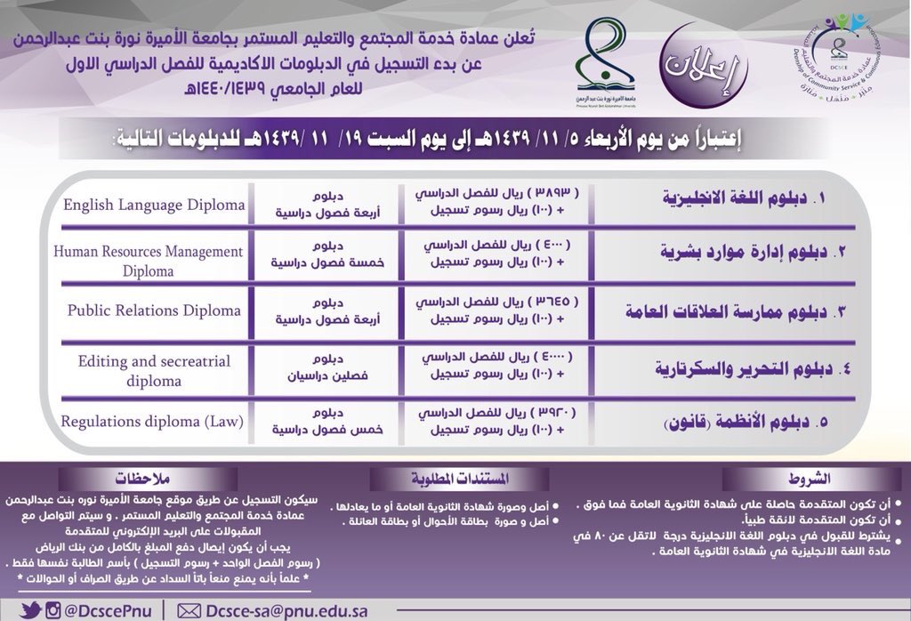 جامعة الأميرة نورة On Twitter تعلن عمادة خدمة المجتمع والتعليم